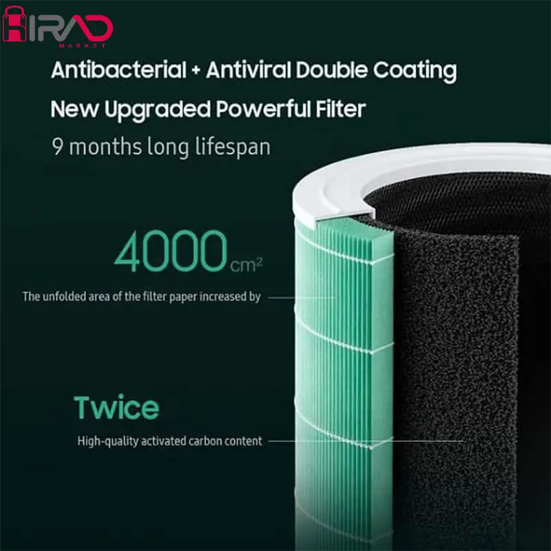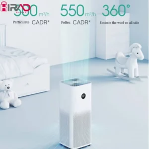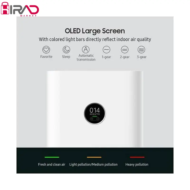 حجم هوای خروجی ۵۰۰ متر مکعب بر ساعت ۱۵ دقیقه تصفیه برای یک اتاق نشیمن تقریباً ۴۰ متر مربع ۶۰ متر مربع منطقه تحت پوشش عمر فیلتر ۶ تا ۱۲ ماه ۹۹.۹۷% فیلتراسیون ذرات ۰.۳μm ۶۵۰۰۰۰ میلی گرم کربن فعال با کیفیت بالا سنسور دوگانه فعال قابلیت کنترل و اتصال Mi Home/Xiaomi Home App + AI voice بلندی صدا ۳۳.۷ دسی بل